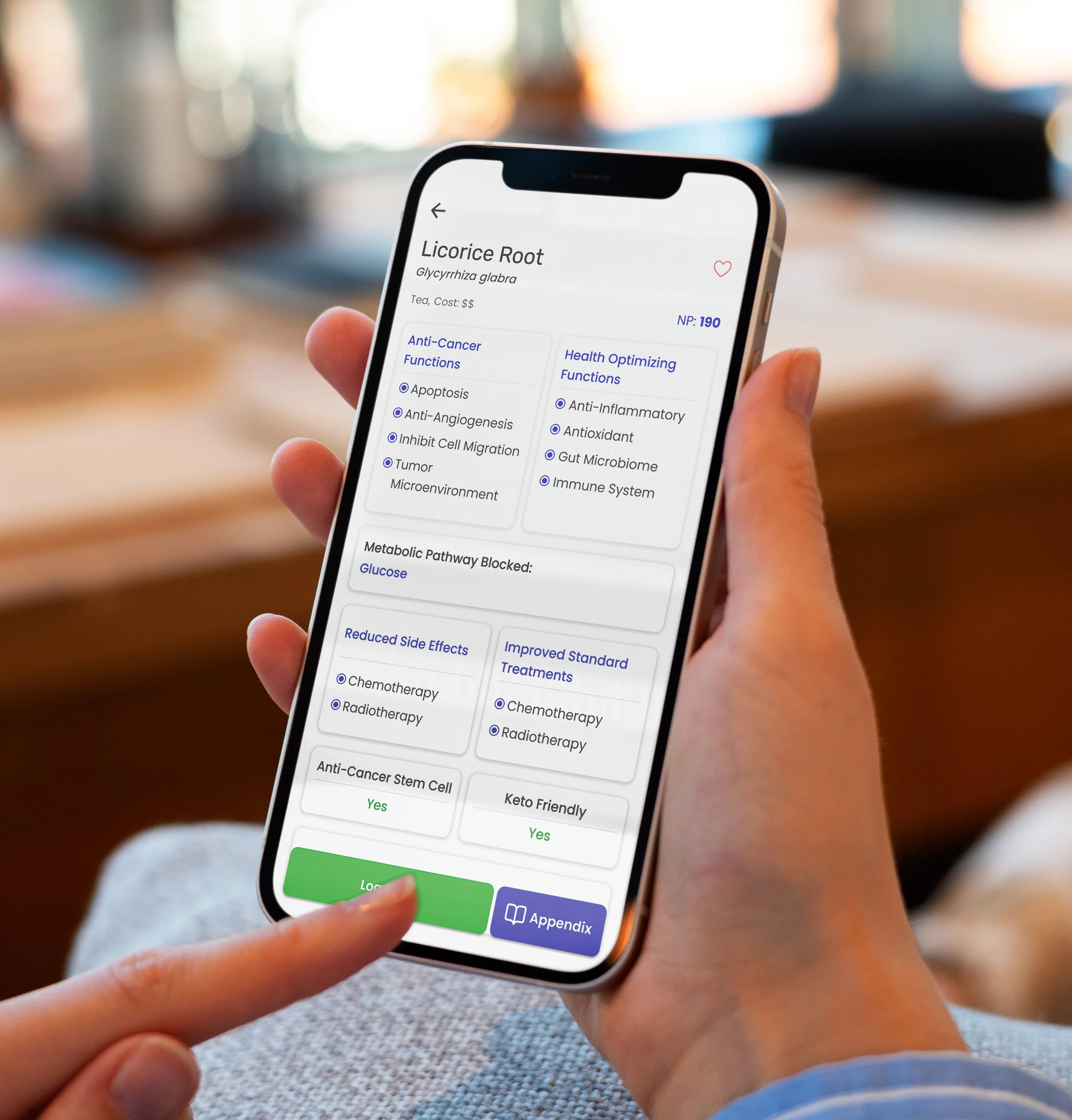 Are you exhausted after watching hours of videos trying to understand what food you should be eating to fight cancer? The NutriLiv app was created so you don't have to do this. NutriLiv is the AntiCancer Nutrition app that helps you quickly find Food and Supplements that have demonstrated the ability to kill cancer cells and boost the immune system. The NutriLiv team has analyzed over 1 million scientific research studies to create an evidence based catalog of anticancer teas, herbs, spices, vegetables, mushrooms, and other foods. The app also provides anticancer and health optimizing profiles for nutritional supplements, aromatherapy, and tinctures.