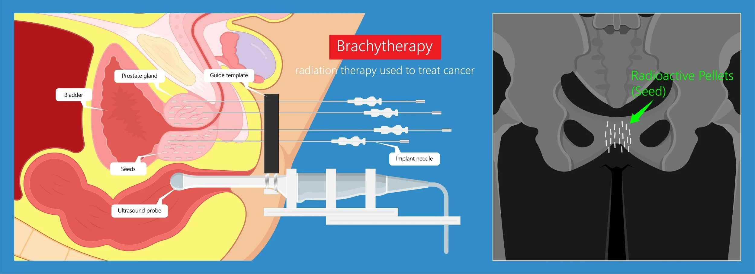 Internal radiation therapy is also used, this is called brachytherapy. In this case, radioactive material is placed into the cancer site or surrounding tissues, implants can be permanent or temporary. Because of the risks associated with this treatment, patients undergoing internal radiation therapy are advised to limit contact with children and pregnant people